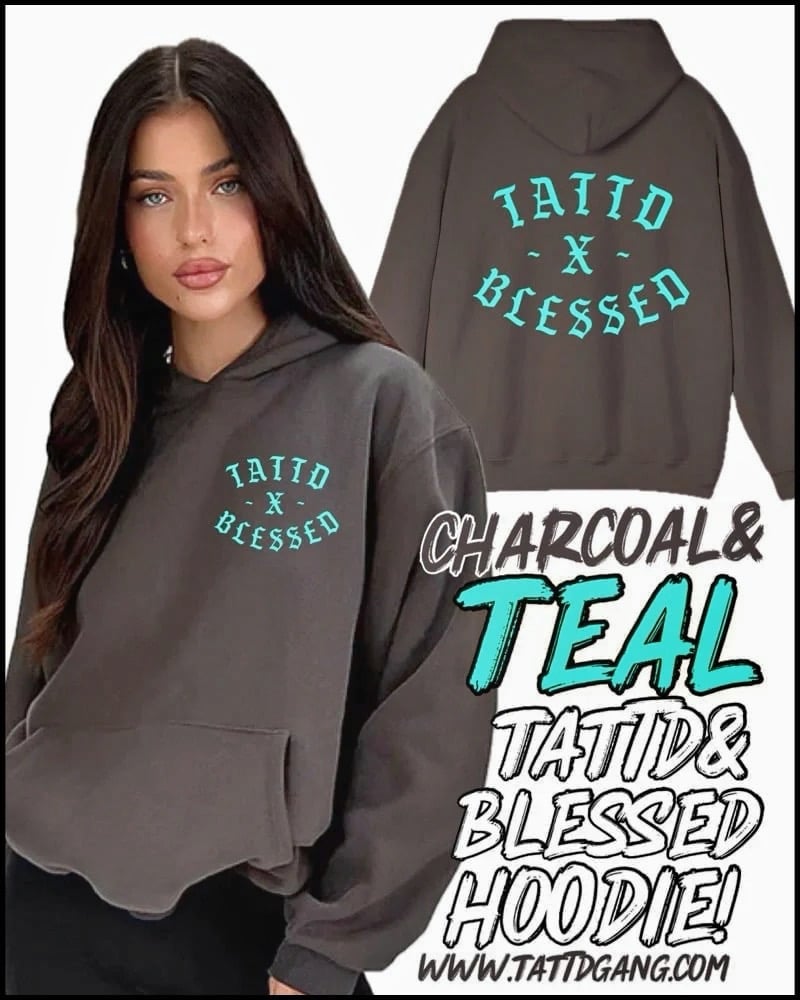 45% off SPECIAL OFFER!!! Tattd&Blessed charcoal&teal Hoodie!!! 🩶🩵
