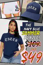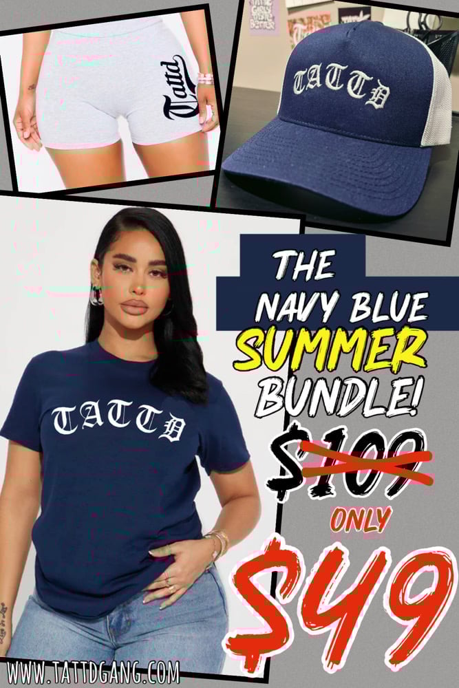 60% off!!! NAVY BLUE TATTD OG TEE + NAVY&WHITE CAP + BIKER SHORTS BUNDLE!!! 💙